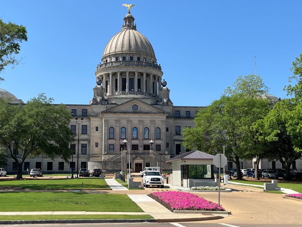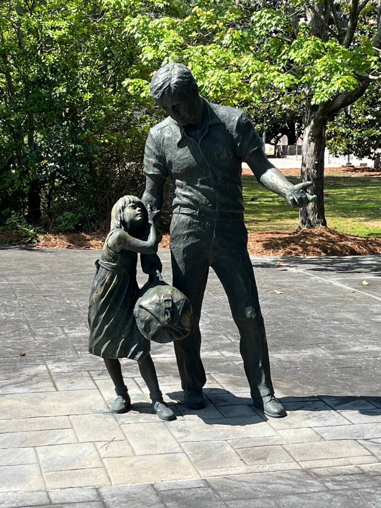 As for my trip, I travelled the rest of the way down the Natchez Trace Parkway, stopping at a minor historical site for a dog walk, and also drove into the city of Jackson, the state capitol. I am posting pictures of the Capitol Building and the nearby Veterans Memorial Statue.
