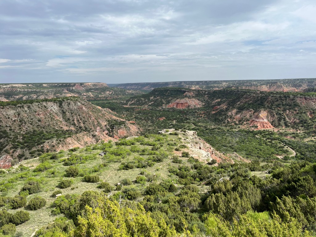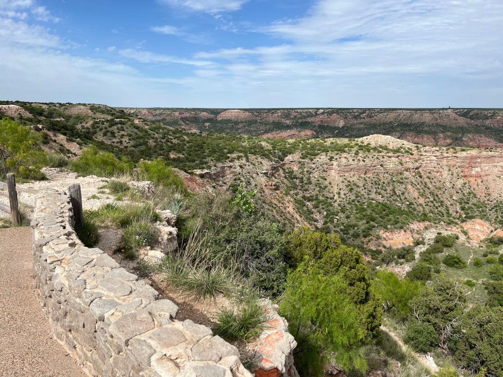 There was almost no traffic heading to the northwest corner of Texas. I passed many farms and cattle ranches, and the only city I saw was Lubbock. With the lack of anything interesting on the way, I was not planning to post a blog – until I got to the campground. Everything up to that point was fairly flat, but the canyon is stunning. I posted three pictures of the canyon from the park’s visitor center overlook. The campground is down in the base of the canyon. I posted a picture of the amphitheater in the campground and a view of the canyon looking up from the camp. We took a two mile hike on one of the trails and then settled in for dinner and sleep.