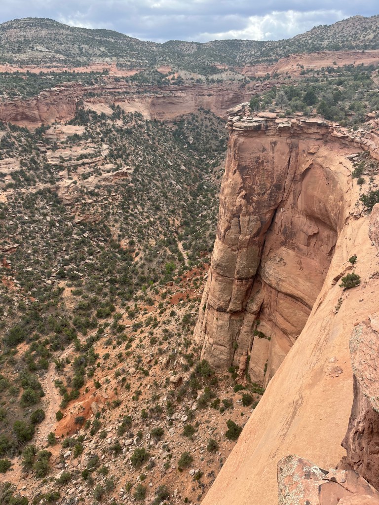 I then continued on I-70 to my destination for the day, the Saddlehorn Campground at the Colorado National Monument. Much like the Sandia Crest in New Mexico, the park is at the top of the mountain at the end of a very long, winding roadway. The views along the road were spectacular, but the drive was uncomfortable. (I have determined that I am probably afraid of heights.) The Visitor Center and the campground are both at top, and my campsite in particular had a tremendous view. Luckily, the campsites are all pull-throughs, as I am still not very good at backing into a campsite with the trailer.