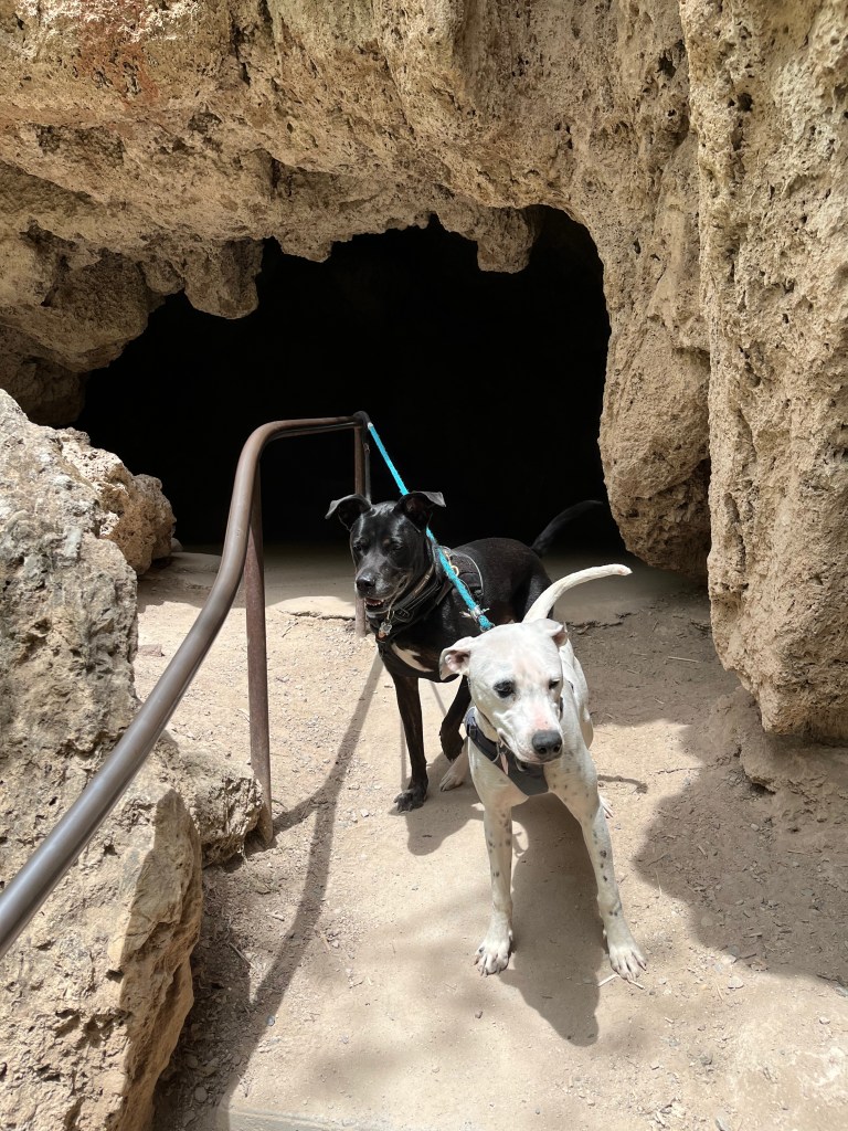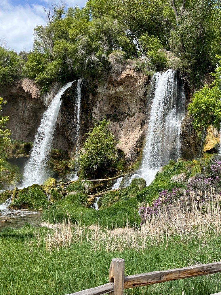 I stopped halfway along the I-70 stretch in Rifle, Colorado, as I had planned to visit the Rifle Falls State Park. This was a 13 mile trip away from the highway, along winding county roads with 25 or 35 MPH speed limits. When I finally arrived at the park, the person in the entrance booth advised that I could not drive through with the trailer, nor could I unhook the trailer and park it there. I had to drive four miles back to the Rifle Gap State Park and unhook it there and return. I asked, “Is this place really worth that hassle?” When I was advised that it was, I took the extra time to drive back and unhook at the Gap Park and then return to the falls. Yes, it was worth it. I took the dogs on a short hike to the falls and also visited the caves on the same site. Since I had to return to the Gap for the trailer, we took another short hike through that park.