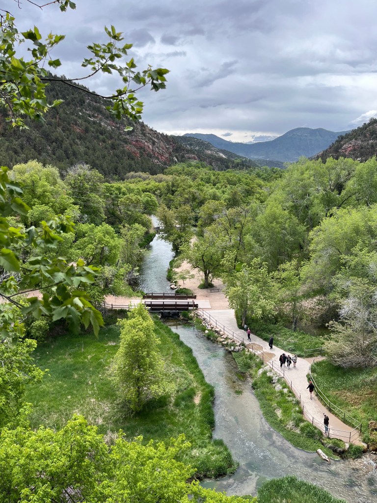 Posted pictures include one taken from my car through the windshield showing the drive though the mountains, three pictures from the Rifle Falls (one from the ground, one from the top showing the river, and one showing one of the caves), two from Rifle Gap (one showing the lake and another showing the actual “gap”), an overlook view from the visitor center at the Colorado National Monument, and finally a view from my actual campsite.