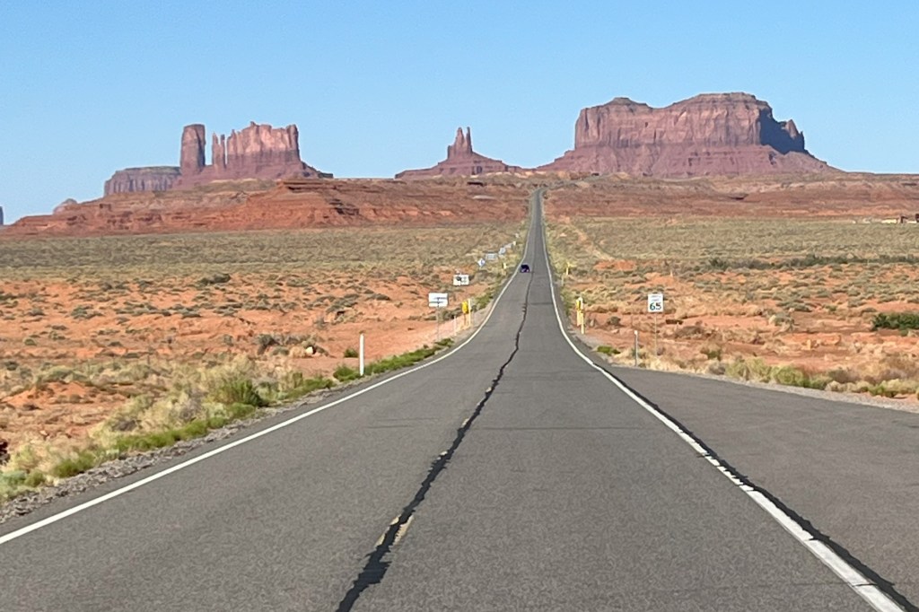 Again, I apologize for posting so many pictures, but there was lot to see on this day. Posted are three photos from Monument Valley, one of the San Francisco Peaks, three from the Chapel of the Holy Cross (one of the outside, one of the altar on the inside, and one looking down on Sedona from outside the church), and a panoramic of the Oak Creek Canyon gorge, near my campsite. Finally, I downloaded a picture that explains the answer to the pop quiz. The spot where I took the photo above has been given the nickname Forrest Gump hill, as it is the spot where Forrest stopped after running for over three years following his mother’s death and Jenny’s departure. In the movie, he abruptly stops and tells his followers, “I’m pretty tired. I think I’ll go home now.”