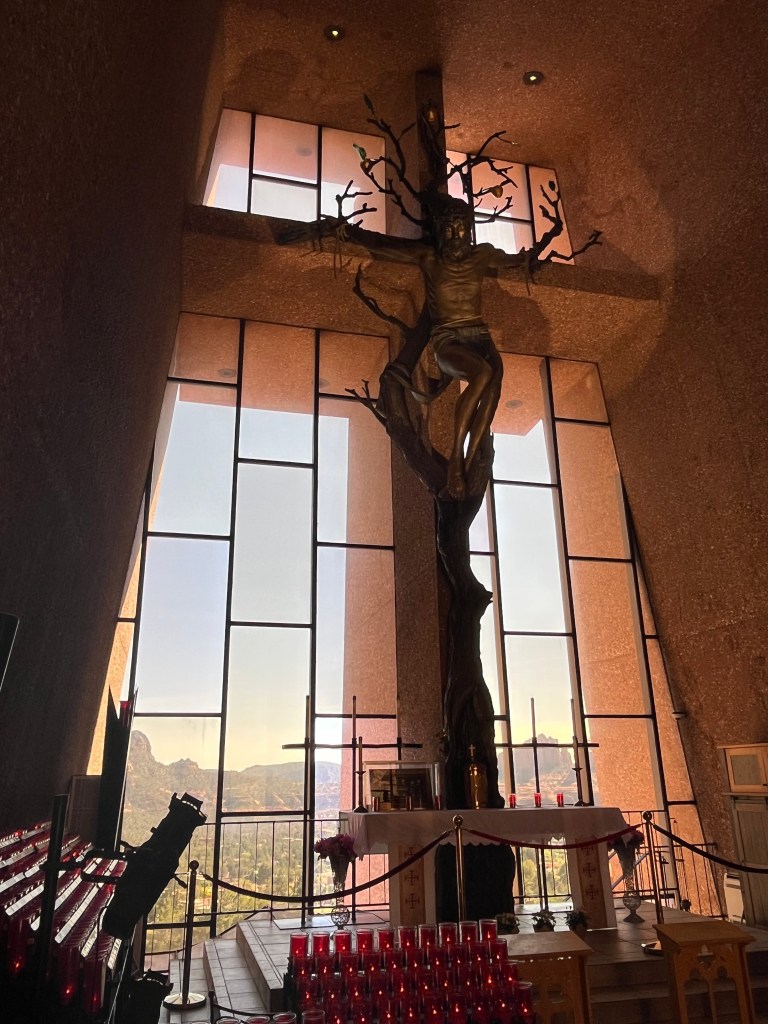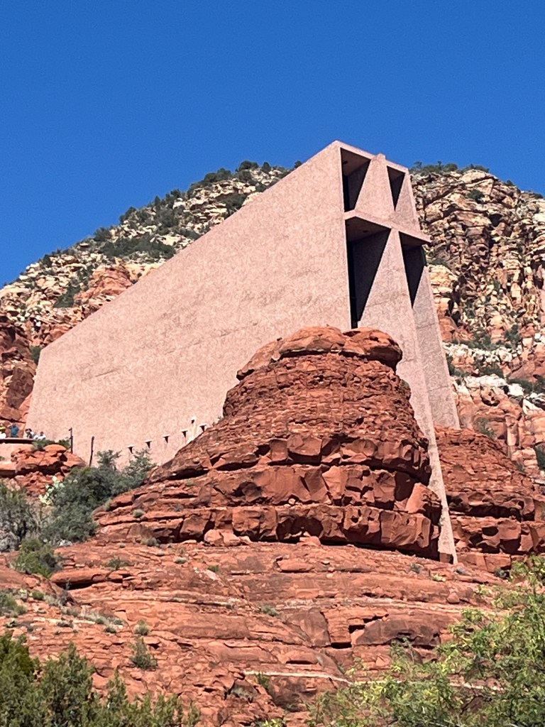 I drove through the Coconino National Forest along Oak Creek Canyon and then finally arrived in Sedona, Arizona, a beautiful city and apparently the backdrop for many Hollywood movies. I wanted to visit the city to see the Chapel of the Holy Cross which is built on the side of a red rock cliff, and which is included in many lists of the most beautiful churches in America. It did not disappoint.