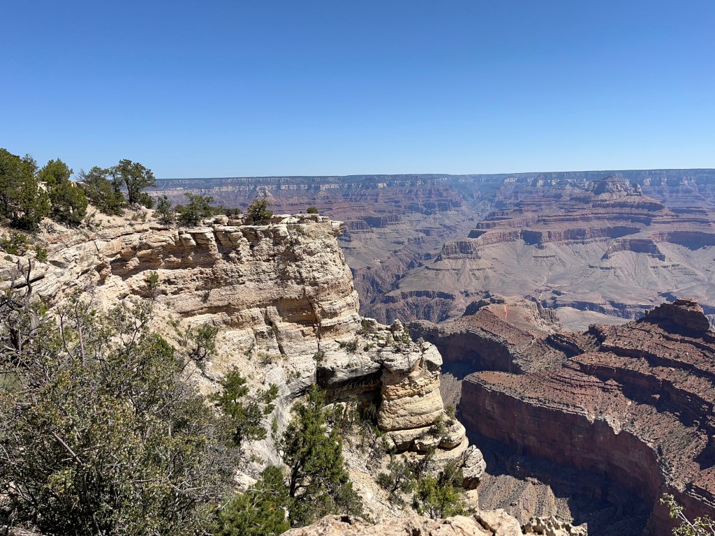 I drove up north to one of my “Must See’s,” the Grand Canyon. I entered the Grand Canyon National Park from the South Rim Entrance and stopped at the Visitor Center. I then took the dogs on a two-mile hike on the Rim Trail, stopping for a few pictures along the way. This included a stop at Mather Point, which may be the most visited scenic view point in the park. On an earlier blog, I wrote that Canyonlands would be tough to beat, but the Grand Canyon easily surpassed it due to the depth, width, and stunning views. Well worth the stop. I posted three pictures from the canyon, with the third photo being Mather Point taken from another cliff.