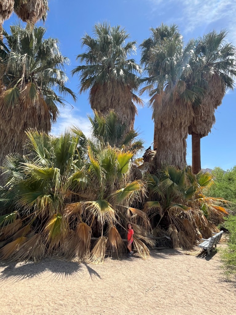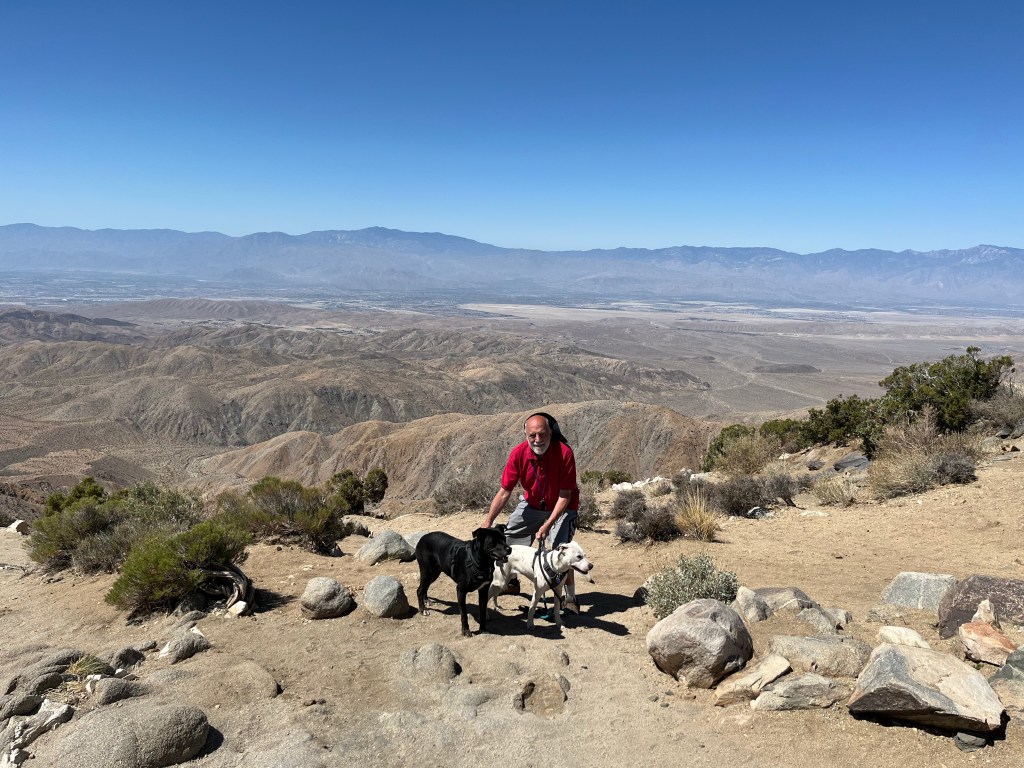 Unfortunately, dogs are not allowed on most of the hiking trails but are allowed in picnic areas and scenic view spots. Still, we spent at least five hours at the park, with many stops. We ate brunch at the Cap Rock picnic area, which had a few caves. We also drove to the Keys View observation point, which offered a stunning view of the desert valley. After a few mini-hikes for the kids, we drove north towards the Twenty-Nine Palms entrance and took one last hike at the short Oasis of Mara trail; this one allowed dogs! We then drove back to Marshall’s home in San Marcos and brought in Chinese food for dinner.