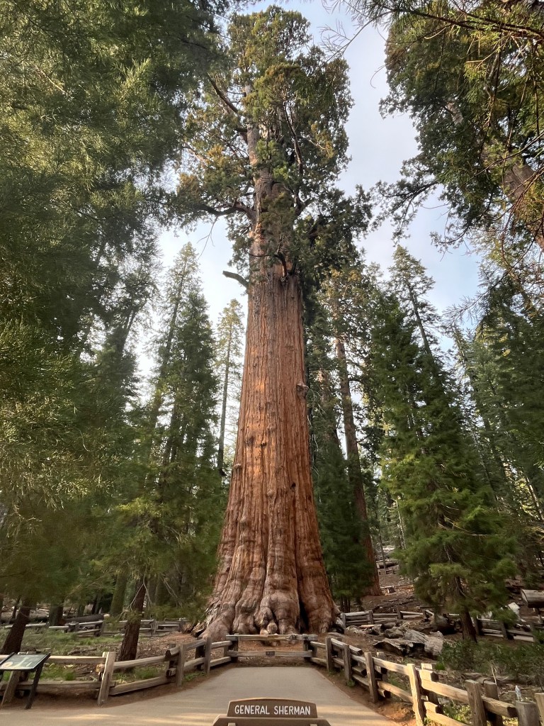 The General Sherman Tree is a giant sequoia tree in the Giant Forest of Sequoia National Park. It is the largest living tree by volume on Earth, although not the tallest. It is estimated to be between 2,200 and 2,700 years old. When I arrived at the parking lot for the tree, I leashed the dogs and started to the half-mile trail to the tree but immediately saw a “no pets” sign. So I put them in the car and jogged to the tree and back. I know this made Gipper mad, because he was really looking forward to peeing on the largest tree in the world.