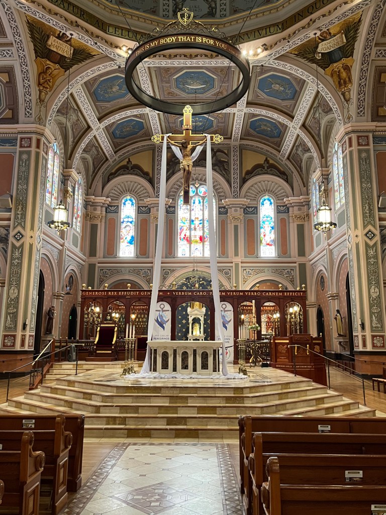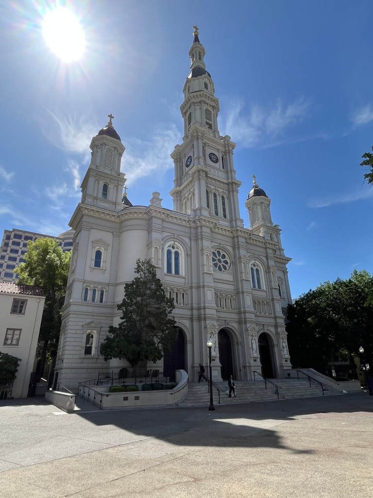 Day 35 is in the books, and I am now halfway done with the trip. I drove to Sacramento and first visited one of the “top ten” churches on my list – the Cathedral of the Blessed Sacrament, one of the largest cathedrals west of the Mississippi River. The Blessed Sacrament is also how the city, the county and the valley derived their names. The church was built in 1887 and is located two blocks from the State Capitol building.