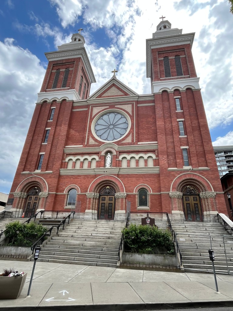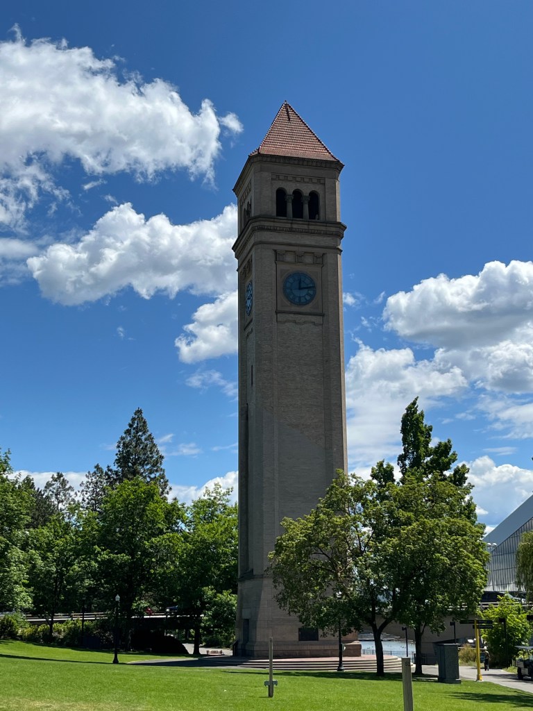 Spokane is the largest city in the stretch between Seattle and Minneapolis. It is the midpoint of the 40-mile Centennial Trail, a paved, non-motorized trail that follows the Spokane River from Nine Mile Falls to the Idaho State Line. We parked near Spokane Falls, where the river cuts through the city. We walked with the dogs through the beautiful Riverfront Park, which was the site for the 1974 World’s Fair. The park is still the biggest tourist attraction in the city and many buildings have been erected just outside the park, including a very large Convention Center. The city is also home to Gonzaga University. Before we left, we stopped by the Cathedral of Our Lady of Lourdes, constructed in the early 1900s, but the doors were locked so I could not go inside; this was the first time I ever encountered a locked church in the middle of the day.