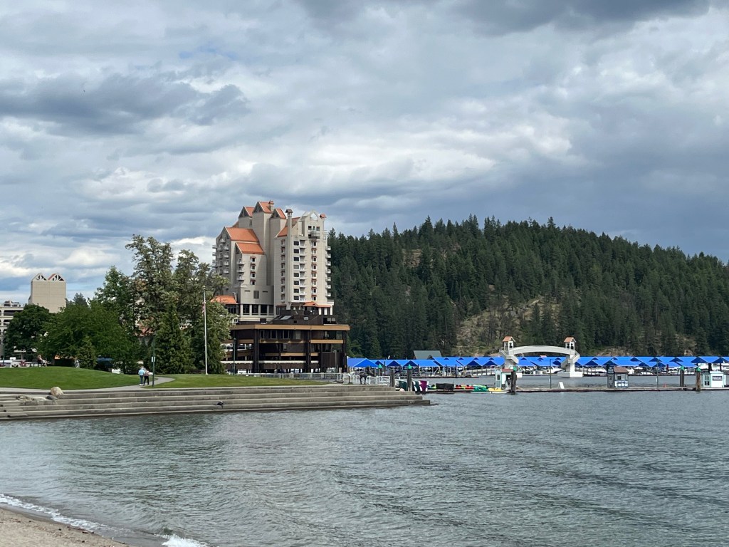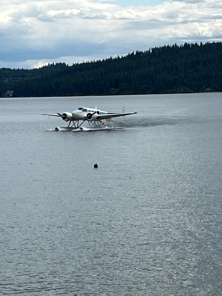 It was short drive from Spokane to Idaho and the city of Coeur d’Alene (translation – Heart of the Awl), another beautiful city. The name originates from French traders and trappers who encountered the Schitsu’umsh tribe in the late 18th century and gave the name to the tribe for their sharp trading skills, with “awl” referring to a pointed tool used to pierce leather. The city sits on the northern end of the very large lake of the same name. We walked through the city park, and watched a tourist sea plane take off and land near the marina.