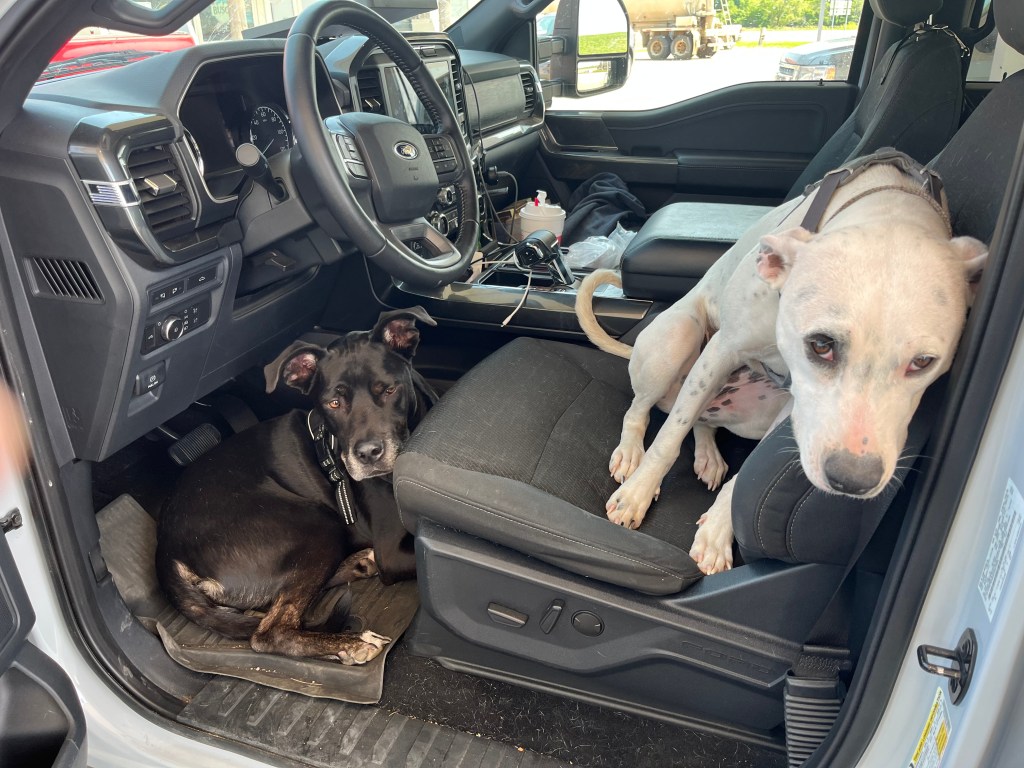 Gipper started acting a little weird; about six times when I stopped for gas or groceries, I returned to the car and found him lying on the floor underneath the steering wheel. I’m not sure how he did that, because I couldn’t get him out of there without opening the driver’s door and pulling him out.