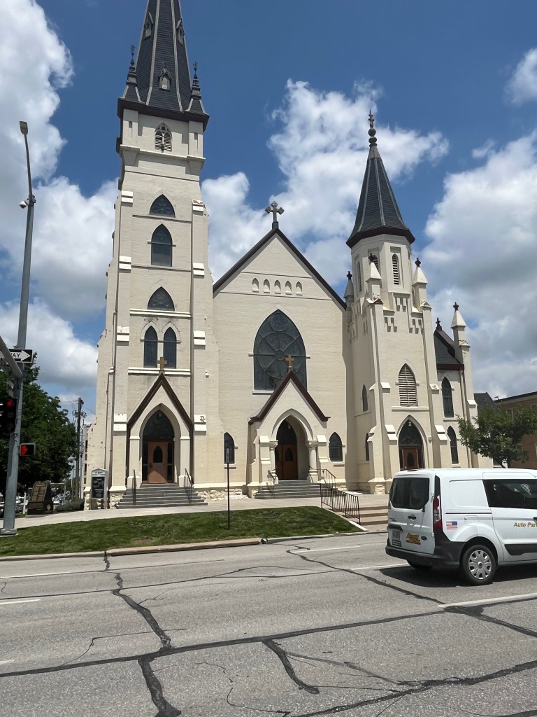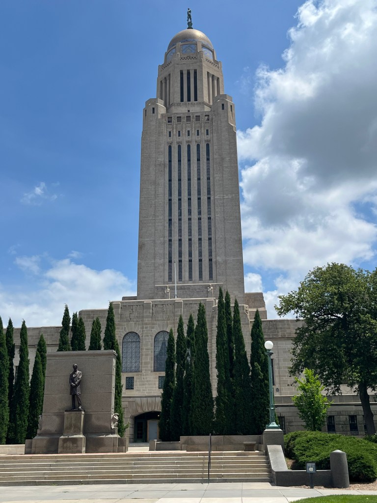 I travelled through Lincoln, driving between the University of Nebraska football stadium and basketball arena. I took photos of the State Capitol Building (with Lincoln’s statue in front of course) and Saint Mary’s Catholic Church across the street, originally constructed in 1888 and formerly the cathedral for the diocese.