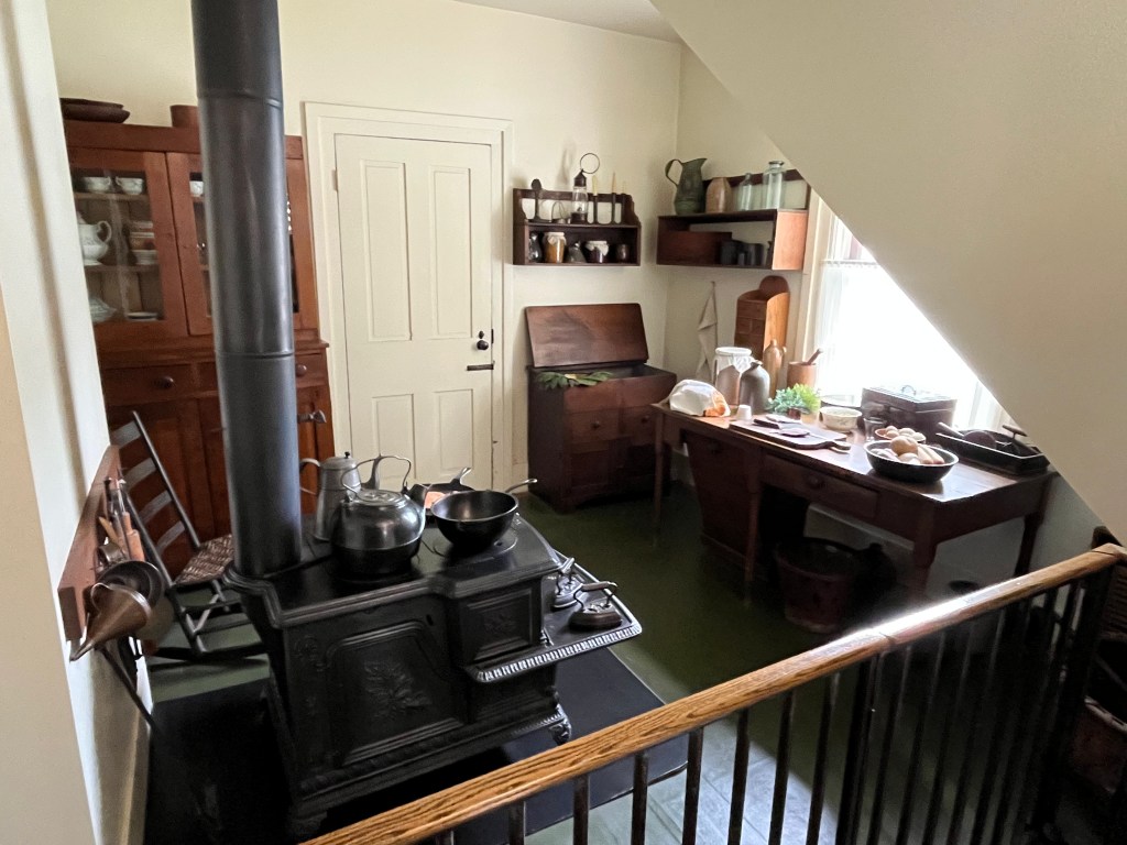 Posted photos include two of the St. Louis cathedral, and the rest from the Lincoln home, including the kitchen (with the original oven) and the “family room,” including the original Stereoscope on the table. The wallpaper in that room was consistent with what was throughout the home which were recreations from the wallpaper the Lincolns purchased from France.