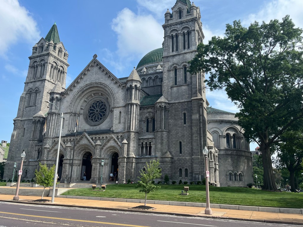 Aside from the spectacular natural wonders earlier in my trip, today was the highlight of my journey so far. I drove to Saint Louis and first stopped off at the Cathedral Basilica of Saint Louis, which was on just about every list of the most beautiful churches in America. I immediately saw why. From the outside, the church is architecturally impressive. I arrived fifteen minutes before 10:00 AM Sunday Mass, so I was still able to enter the church and take a few photos. It was clear many visitors came from out of town for the same purpose, as a few others were also taking pictures.