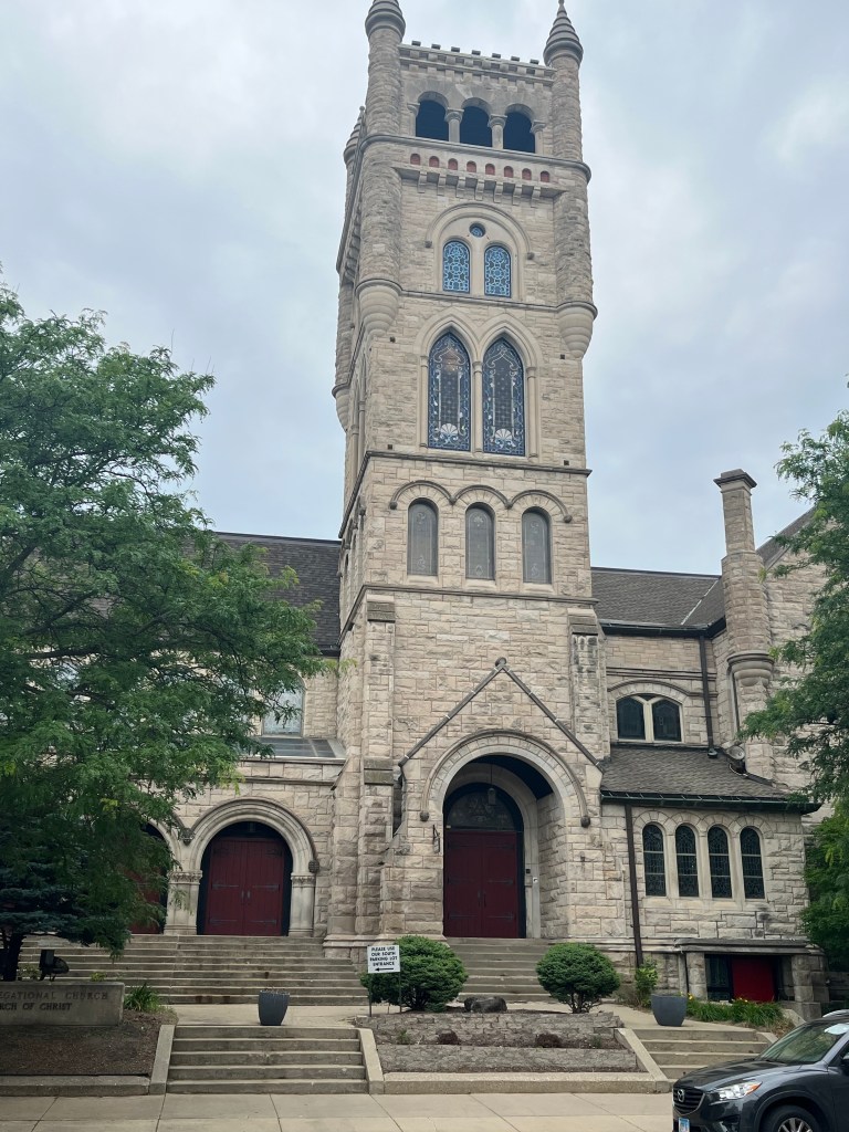 I have seen Chicago many times, so I passed up driving through the city and instead headed straight north towards Wisconsin. This path took me through Rockford, Illinois. A few years ago, my sister Ginny, an avid genealogist, traced our ancestry back many generations and found that our great-great-grandfather, Lansing Porter, was the first pastor of the Second Congregational Church in the City of Rockford in 1849. After new buildings and some fires, the parish is still active, now called the Second Congregational UCC/First Presbyterian Church. Ginny arranged for us (including brother Jim and sister Cathy) to visit the church, and the parish historian was very happy to meet us and share more of the church history. Since I was driving past Rockford, I decided to stop and take a picture. I also noticed that the city had experienced major refurbishments since the prior visit and the downtown area was greatly upgraded.