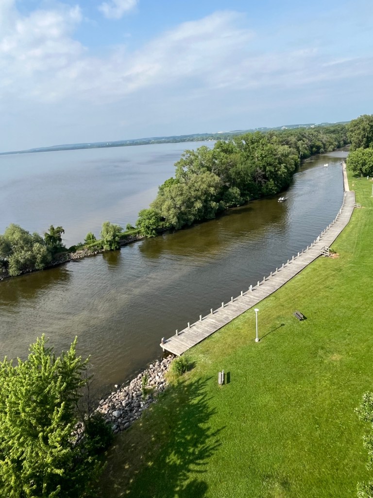 Next, I drove south to Fond du Lac (translation – bottom of the lake) and stopped off at the city’s Lakeside Park, again with awesome views. Finally, I completed the circular drive to the campground at Columbia Park on the eastern side of the lake. This is a very nice little community park, with an observation tower on the shore. I climbed the tower and took a few more awesome photos before settling in.