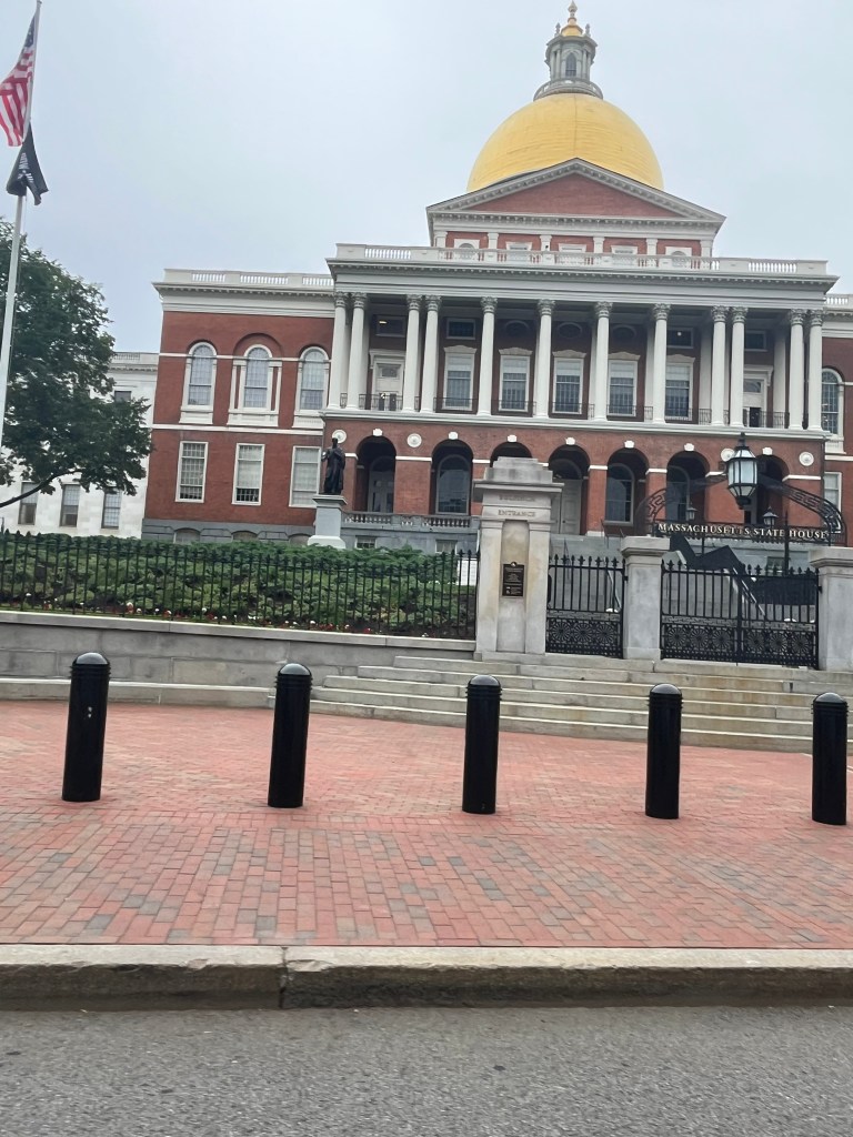 Photos include the Maine State house, three views from Fort Williams Park in Portland, and my two “drive-by” photos from Boston (just to prove I went there).