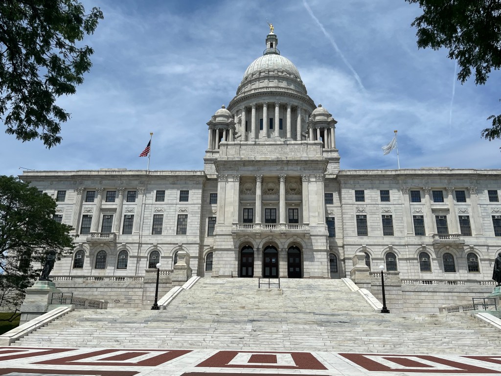 Photos include the Cape Cod lighthouse and associated view, the New Bedford Custom House, a whale skeleton from the museum, a view of a beach near Newport, the Rhode Island State House and a view of the Providence downtown from the steps of the State House.